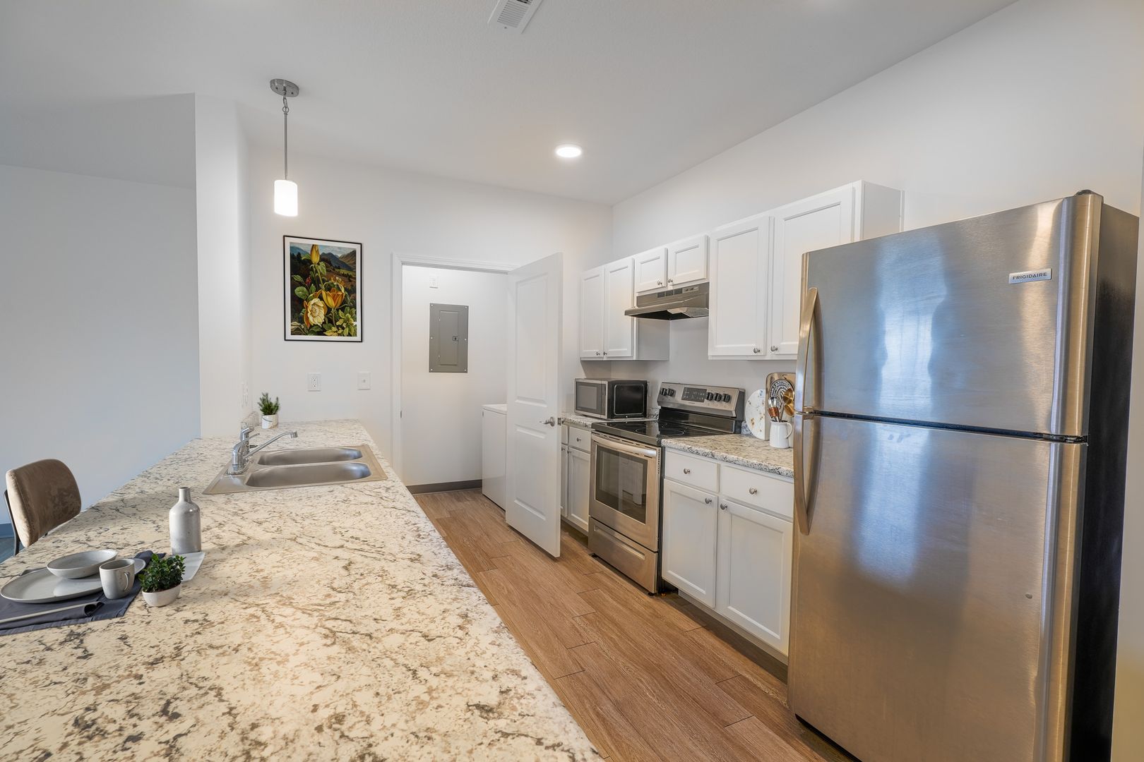 All appliances included with washer and dryer provided in unit. Don't be afraid to drive past for a quick look at Veteran's park in the middle of the complex with the memorial and flags to honor current and former military members.